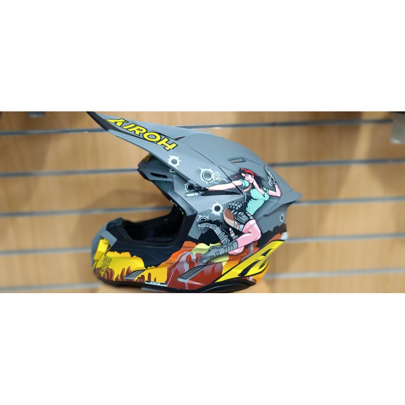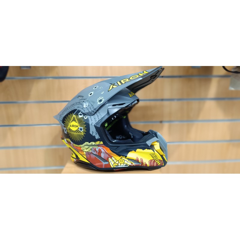 Casco Airoh Twist 3 Adventure Mate. Casco ideal para los amantes del motocross, su calota está fabricada con resina termoplástica HRT (High Resistant Thermoplastic) de gran resistencia. Incorpora la tecnología ASN (Airoh Sliding Net), y el sistema A.E.F.R. para hacer más fácil la extracción del casco en caso de accidente. Varias entradas y salidas de aire en la parte superior, mentonera y mandíbula para una mejor aireación que lo hace perfecto para un uso diario. Visera desmontable. Predisposición para instalar un intercomunicador (no incluido). Cierre de doble hebilla.